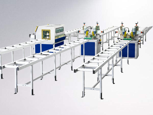 本公司開(kāi)發(fā)研制的“二步法”鋁合金隔熱型材加工生產(chǎn)線,極大地改善了國(guó)內(nèi)原有生產(chǎn)線在工藝上的不足,既提高了生產(chǎn)效率,又實(shí)現(xiàn)了節(jié)能、低耗,提高了企業(yè)效益,是鋁合金隔熱型材加工的理想設(shè)備?!岸椒ā鄙a(chǎn)線設(shè)備包括:開(kāi)齒穿條機(jī)一臺(tái),滾壓機(jī)一臺(tái),檢測(cè)機(jī)一臺(tái)以及若干輔架。